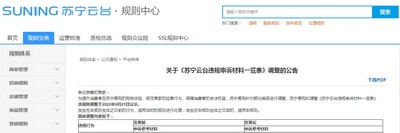 苏宁易购调整《苏宁云台违规申诉材料一览表》 9月28日生效
