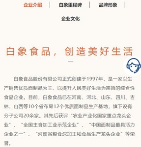 官网公开资料显示,白象食品股份有限公司正式创建于1997年,是一家以生产销售优质面制品为主的综合性食品企业。产品涵盖方便面、挂面、面粉、面点、饮品等多个品类。目前,已在河南、河北、山东等10个省市布局11个优质面制品生产基地,旗下设有分子公司20余家。
