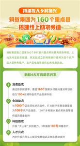 蚂蚁集团乡村振兴部总经理厉建良表示,“160个重点帮扶县大多数曾是深度贫困县,也是蚂蚁助力乡村振兴的首要关注对象。我们希望通过支付宝助农频道这个纯公益属性的助农窗口,结合普惠金融等系列举措,助力160个重点县产业更兴旺,农村更富强。”