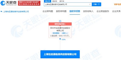 信息显示,上海怡亚通临港供应链有限公司成立于2007年8月2日,注册资本6842.11万人民币,经营范围包括:供应链管理服务;国际货物运输代理;国内货物运输代理;保税港区内商业性简单加工;信息咨询服务等。