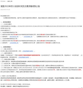 与此同时,淘宝网还发布淘宝2022年双11发货时间及交易流程调整公告,为保障买家的购物体验,维护双11期间天猫有序的交易秩序,淘宝对商家在双11期间的发货时间、交易流程等作出特殊规定。