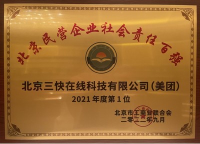 美团获2022北京民营企业社会责任百强榜榜首