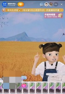 据遥望表示,这一自有直播间的定位是“科技、助农、国潮”。所谓科技,用遥望的话说是“通过数字影棚的科技化手段,呈现3D原产地场景、一秒换装、虚拟人与主播的交互式互动。”听起来很高级,但实际上就是更换背景板,以及“大头娃娃”特效。