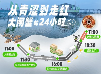 值得关注的是,除了为大闸蟹上“保重险”,今年天猫超市还开通产地直发,在阳澄湖湖边设立仓库,保障大闸蟹“从青涩到走红”最快只要24小时。在大闸蟹出湖的第一时间,会通过专车运到仓库进行验货,缺胳膊少腿的大闸蟹被挑出来,留下来的会被放入暂养池等待二次分拣,达标的捆绑、包装、发货,通过冷链配送,最快24小时内送货上门。