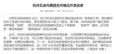 下一步,杭州石油将根据外卖业务开展情况,适时增加包括城郊区域在内的易捷便利店,进一步扩大外卖业务覆盖范围。在疫情防控常态化、便利店人流同比下降的情况下,这一举措将有助于探索门店站外营销新场景。