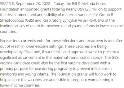 9月29日消息,盖茨基金会昨日晚间发文表示,比尔及梅琳达・盖茨基金会宣布提供近1.28亿美元的赠款,用于支持针对乙型链球菌(Group B Streptococcus)和呼吸道合胞病毒(Respiratory Syncytial Virus)的母体疫苗的开发和普及。这两种感染都是导致低收入国家新生儿和婴幼儿死亡的主要原因。盖茨基金会的赠款将支持相关工作的开展,确保低收入国家的孕妇能够获得这些疫苗。
