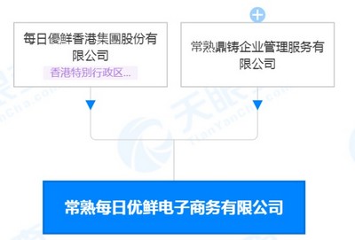 股权穿透图显示,该公司由每日優鮮香港集團股份有限公司和常熟鼎铸企业管理服务有限公司共同持股。