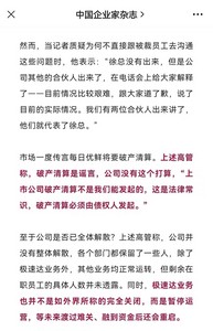 另据《中国企业家》杂志的报道,对于市场上有关每日优鲜将要破产清算的猜测,每日优鲜高管曾经称,破产清算是谣言,公司没有这个打算,“上市公司破产清算不是我们能发起的,这是法律常识,破产清算必须由债权人发起。”