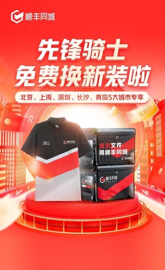 值得一提的是,自8月15日起,顺丰同城累计投入百万补贴,在北京、上海、深圳、长沙、青岛五大城市开启“先锋骑士免费换新装”活动。这五座城市的先锋骑士们,已陆续领到全新装备,包括顺丰同城X鸿星尔克联名款T恤、春秋夹克,以及58L超大容量配送箱。
