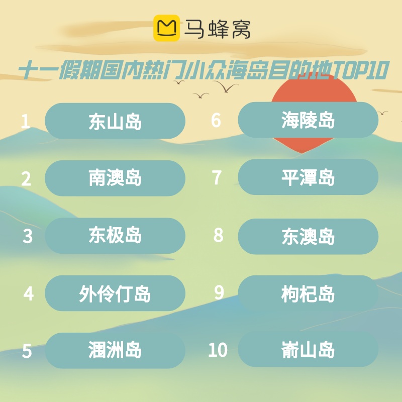 近年来,国内“小众海岛游”不断发展。数据显示,近一周,马蜂窝站内“小众海岛”平均搜索热度上涨超100%,广东、福建、浙江多个海岛登上“十一长假热门小众海岛目的地”榜单。福建漳州东山岛夺得榜首。