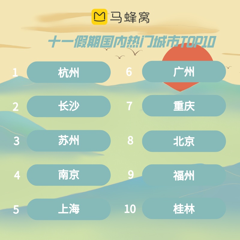 10月8日消息,国庆刚过,马蜂窝旅行玩乐大数据显示,在长途出行不确定的形势下,本地“微度假”需求大幅增长,马蜂窝十一期间本地游订单较上年同期增长超90%。杭州、长沙、苏州、南京、上海、广州、重庆、北京、福州、桂林名列十一假期国内热门城市目的地前十。