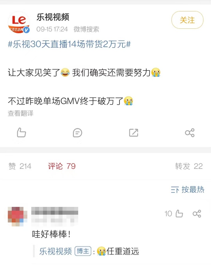 但他们的带货成绩也可以称之为惨淡,乐视14场直播销售额只有2万元,高途一周带货也仅有 5 万元。