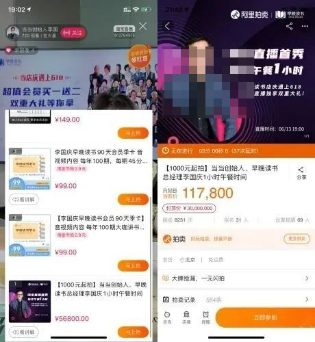 嘴上说着荒唐,但两个月后李国庆也转身走进了直播间,不仅推销自己的早晚读书季卡,还学巴菲特拍卖起了“李国庆午餐”。