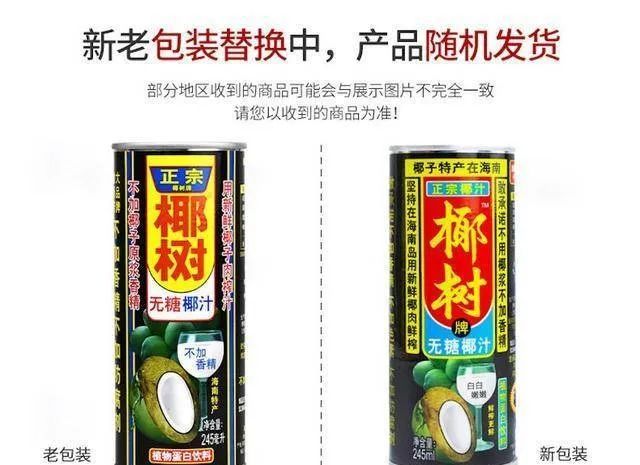 值得注意的是,椰树集团以及众多国货品牌已经意识到“产品老化”的问题了,去年1月份时,有媒体报道,椰树牌无糖版椰汁正在进行新老包装更替。在此次新包装上,除常规的年份更迭,椰树牌椰汁保持30余年的字体也做出调整。似乎是品牌正在进行改变,但其产品包装设计的风格还没有改变。