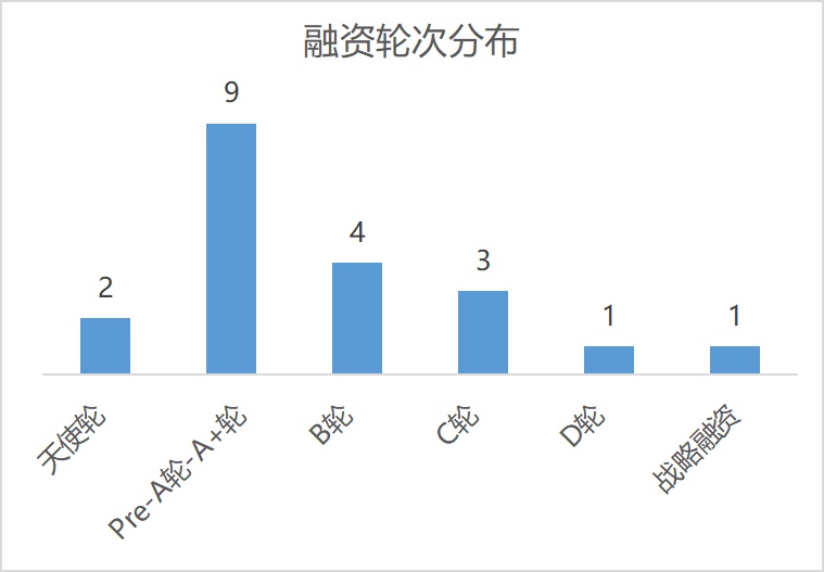 从融资轮次上看,9月融资项目当中,早期项目有11个,其中天使轮有2个,Pre-A轮-A+轮阶段的9个。两者占总项目之比约为52%。成长期阶段的项目有7个。其中,B轮阶段有4个,C轮阶段有3个,两者占总获投项目的33%。此外,D轮和战略融资各有1个。
