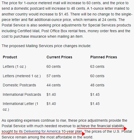 美国邮政局在申明中表示,随着运营费用的持续上涨,这些价格调整为邮政服务提供了急需的收入,以实现其为美国交付10年计划所寻求的财务稳定性。