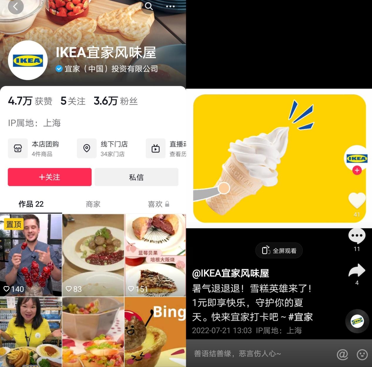 到了2022年,宜家开通抖音账号宜家风味屋,正式开启美食带货生涯。