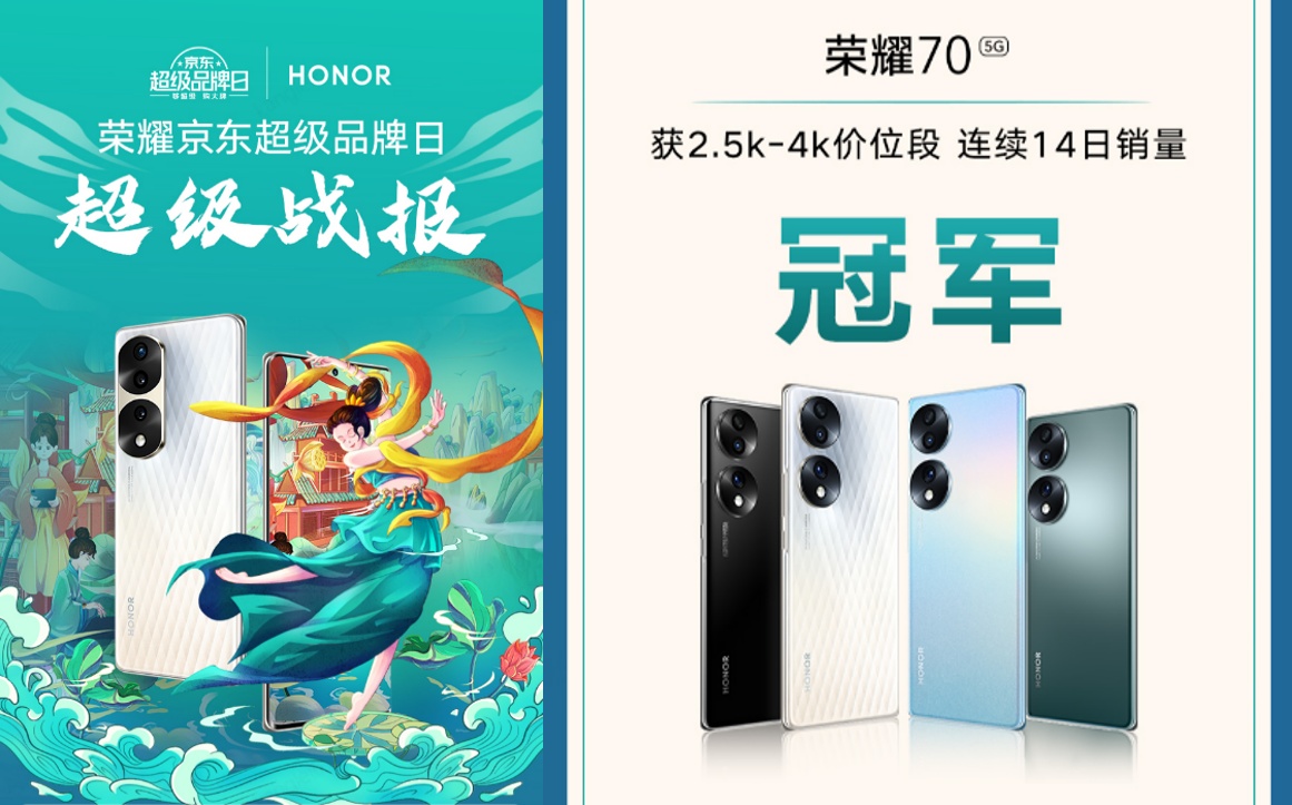 数据显示,今年京东618期间,京东手机“GO ON计划”的人群ROI(投资回报率)高出常规投放人群90%,助力荣耀70斩获京东618手机新品销量冠军,在荣耀京东超级品牌日期间,荣耀70也连续14天斩获2500-4000元价位段销量冠军。