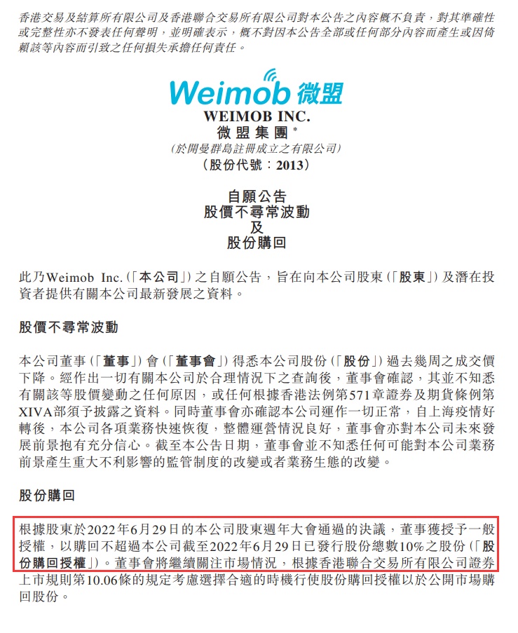值得一提的是,前不久,微盟集团发布股价不寻常波动及股份购回自愿公告。