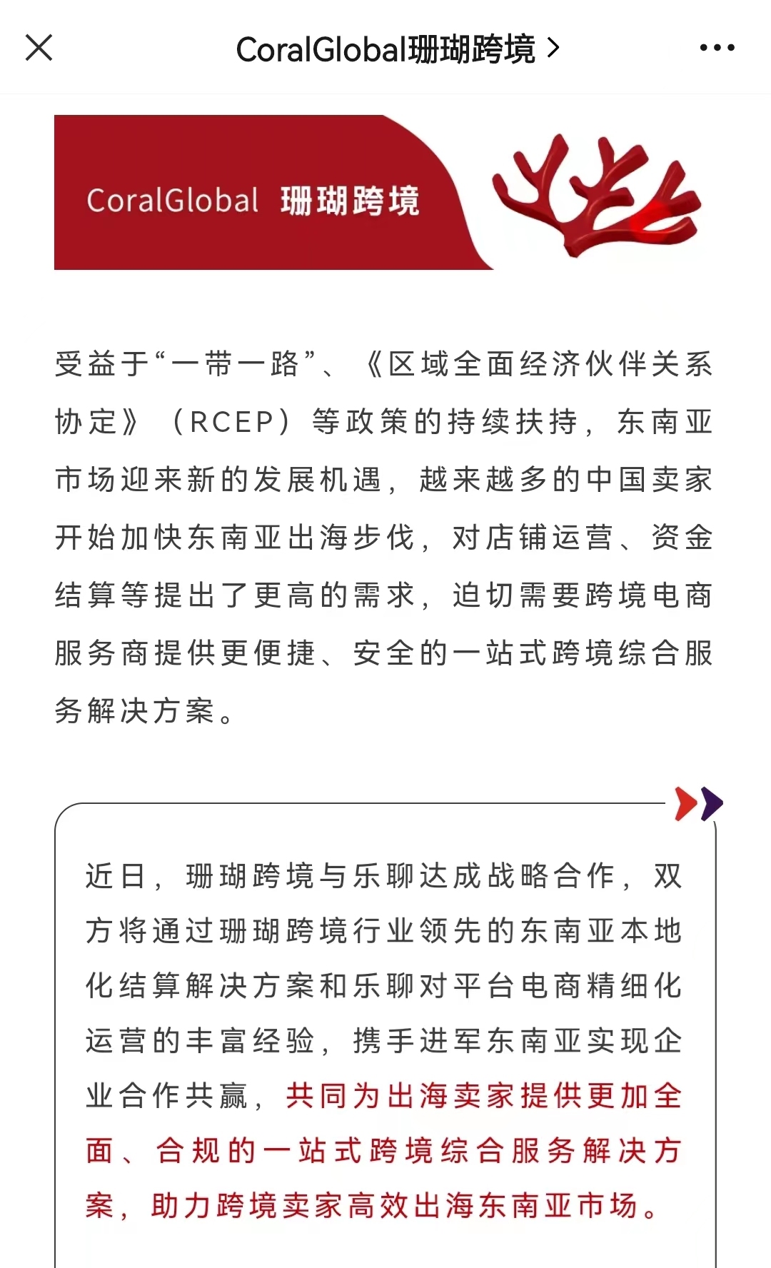 珊瑚跨境与乐聊达成合作 为卖家提供一站式跨境服务解决方案