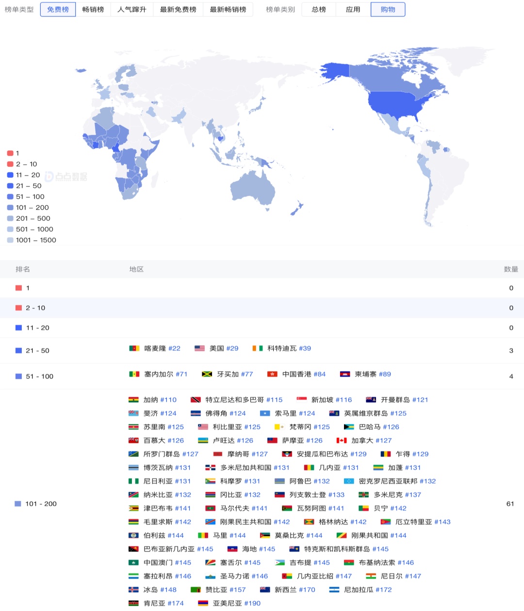 据了解,除在美国引起广泛关注外,有消息称,拼多多已经在非洲上线了Temu,还取得了不错的成绩。相关数据显示,Temu已在非洲多个国家进入Google Play购物免费榜前200应用之列。其中在喀麦隆,Temu位列Google购物类免费榜22名,超过其在美国排名。