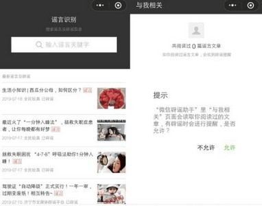 【微信辟谣助手】腾讯官方出的辟谣工具,可以自动读取我们在微信中阅读过的文章,发现谣言时及时进行辟谣提醒,给父母装一个还是很有必要的!