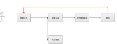 【红包裂变】红包裂变的方式也是同理,完成固定用户数的邀请达到提现额,就可以提现。通过给予用户直接的利益“钱“,只是设置了提现门槛。这样红包裂变的方式要给予用户任务,增加产品的多样性。比较产品本身是没有给予用户带来其他价值的,用户在上面的流量画像层次不齐,所以需要倒流到对应有场景的产品上,细分流量。