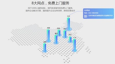 公司主要面向4000万中小企业,通过SAAS产品帮助其开展“互联网+营销”,凭借一个平台、三大系统、5H标准服务加速其互联网化、信息化的进程,同时在多个中心城市设立分支机构,并配套建设了线下千人服务团队,以为客户提供本地化一对一服务。