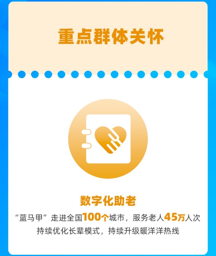 在用户体验上,视障、老年人、未成年人仍然是蚂蚁集团重点关注的群体,参与编制金融APP无障碍服务团体标准、“蓝马甲”行动走进全国超过100个城市服务老年人超45万人次、上线游戏锁防止未成年人游戏沉迷过度消费等。