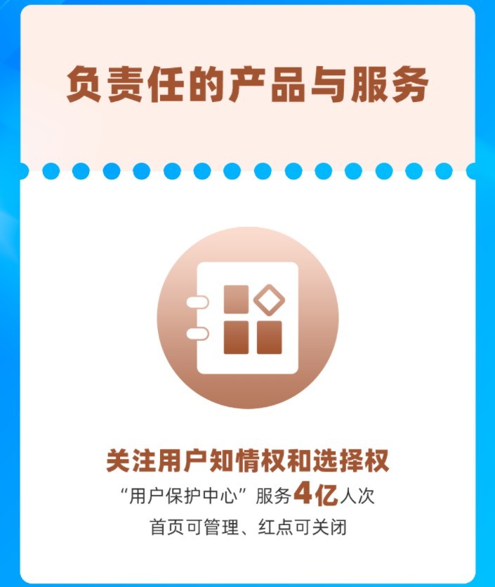 蚂蚁“用户保护中心”已为4亿人次提供服务,上线首页可管理、红点可关闭等功能;邀请超过2万名用户担任支付宝体验官,完成49个产品功能测评。
