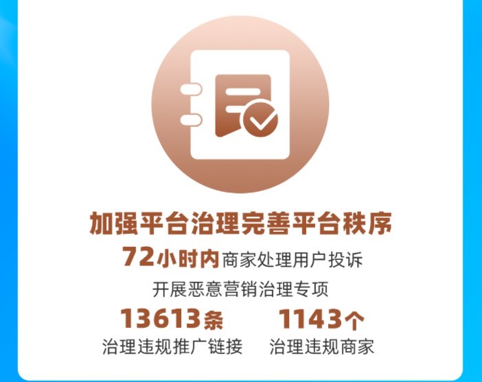 对于平台治理,蚂蚁集团更新公布《支付完成页投放规范及违规处理规则》等规则;治理违规行为营造健康的平台环境,针对小程序、支付完成页、生活号、扫一扫、卡券等场景持续优化,开展恶意营销治理专项,累计治理违规推广链接13613条、违规商家1143个、违规小程序477个等。