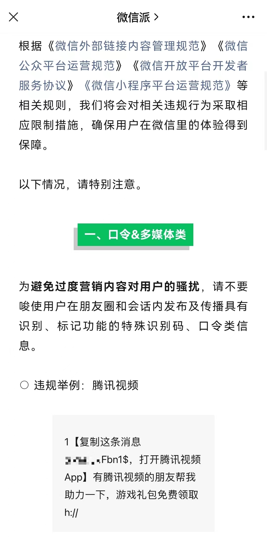 此前,微信曾发布打击春节过度营销违规内容的公告,曾对春节期间部分第三方APP影响用户体验、诱导下载相关违规行为采取相应限制措施。