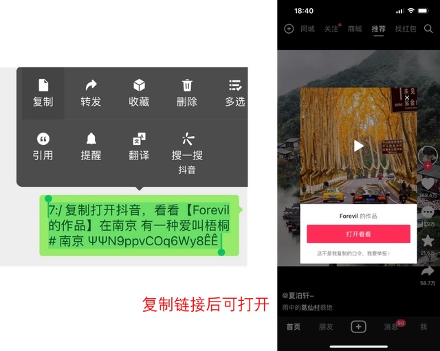经过最新测试,微信现已可正常跳转抖音链接,抖音视频可发送口令到微信聊天界面,进行分享。复制微信界面的口令后,可在抖音平台自动跳转相应视频,未出现媒体10日晚报道所言无法复制跳转的情况。