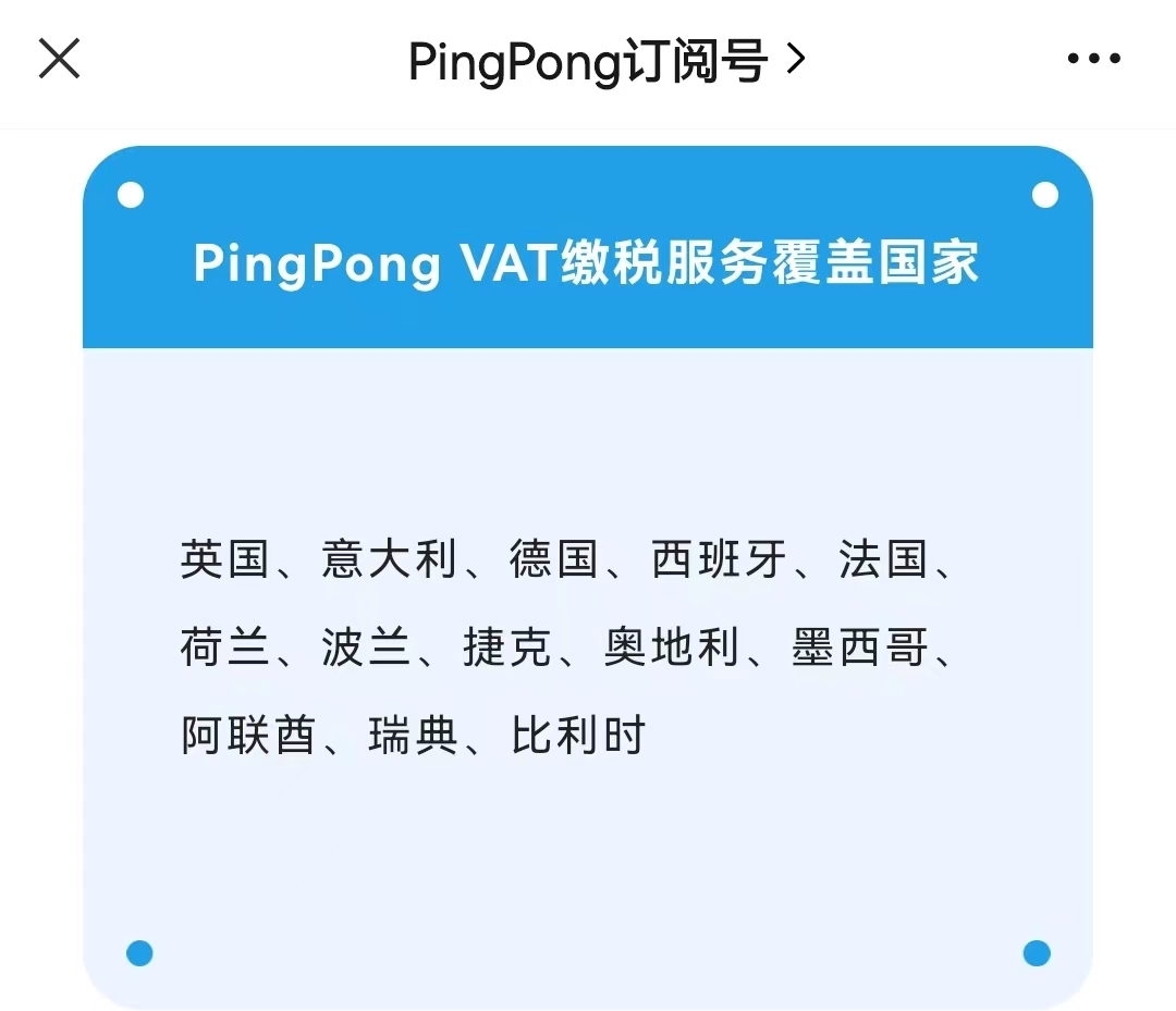 PingPong上线瑞典比利时VAT缴税服务
