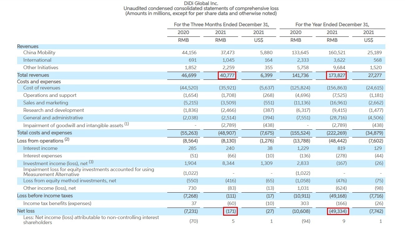 滴滴出行2021年第四季度财报