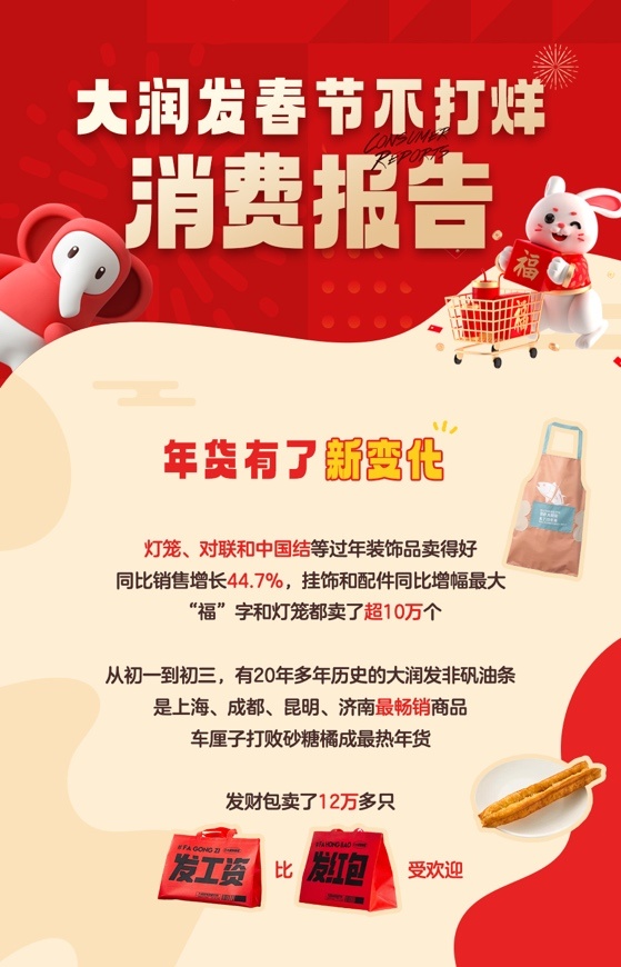 大润发《2023年春节不打烊消费报告》发布 新年发财包售卖超12万个