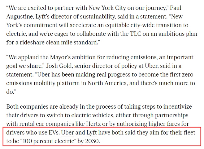 纽约要求Uber和Lyft在2030年前实现车队100%电动化