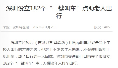 全市新设立的182个“一键叫车”点将切实帮助老年人解决打车软件操作难、高峰期以及偏远路段路边叫车难等问题,为老年人提供更周全、更贴心、更直接的出行服务。