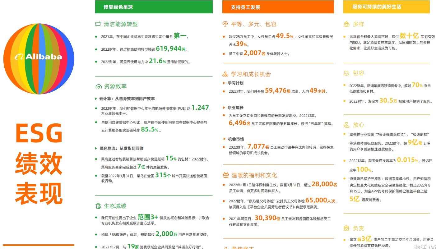 截自阿里巴巴《2022阿里巴巴环境、社会和治理报告》