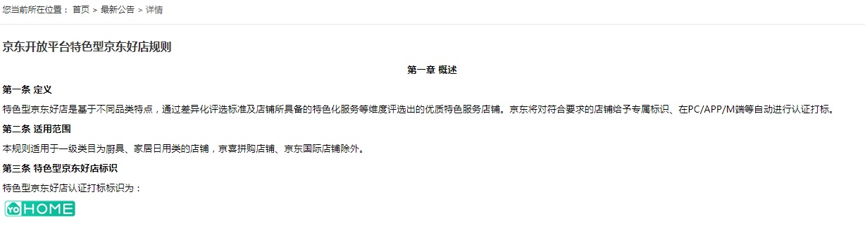公告显示,特色型京东好店是基于不同品类特点,通过差异化评选标准及店铺所具备的特色化服务等维度评选出的优质特色服务店铺。京东将对符合要求的店铺给予专属标识、在PC/APP/M端等自动进行认证打标。本规则适用于一级类目为厨具、家居日用类的店铺,京喜拼购店铺、京东国际店铺除外。