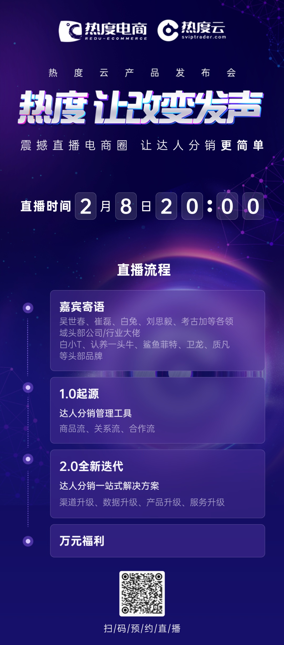 2月8日“热度云”正式发布,同时从带货渠道、数据、产品、服务的四个维度进行详细拆解,致力于让达人分销更简单。