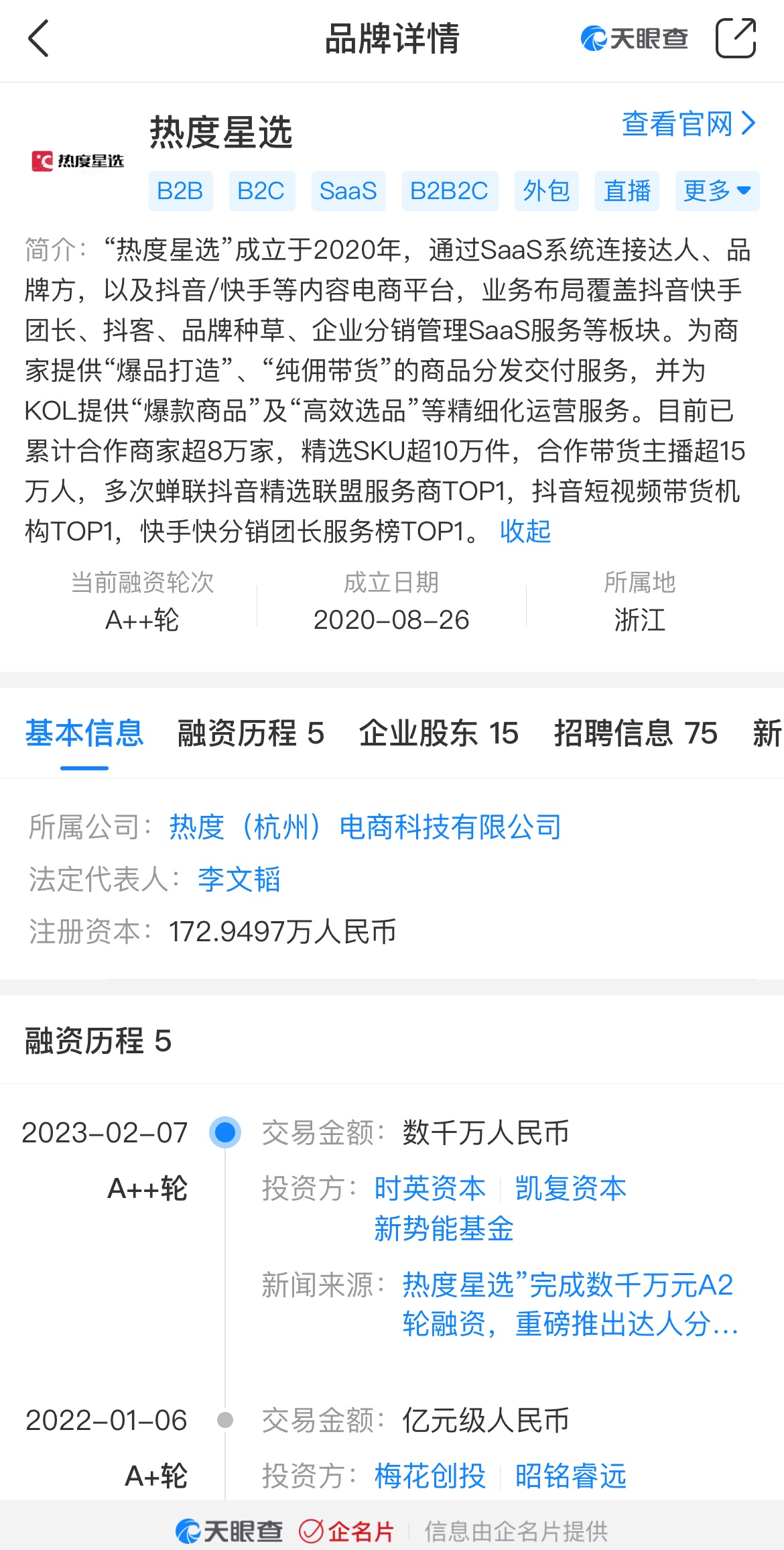 热度星选成立于2020年10月,是一款专注服务直播电商的达人选品&品牌营销SaaS平台,通过SaaS系统连接达人、品牌方和抖音/快手等内容电商平台。