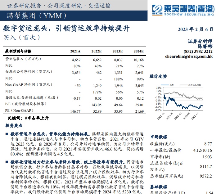 东吴证券 给予满帮“买入”评级