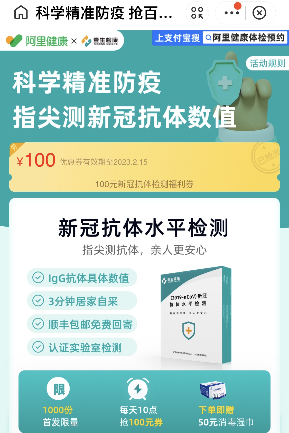 阿里健康上线新冠抗体数值居家检测产品“怡家测”