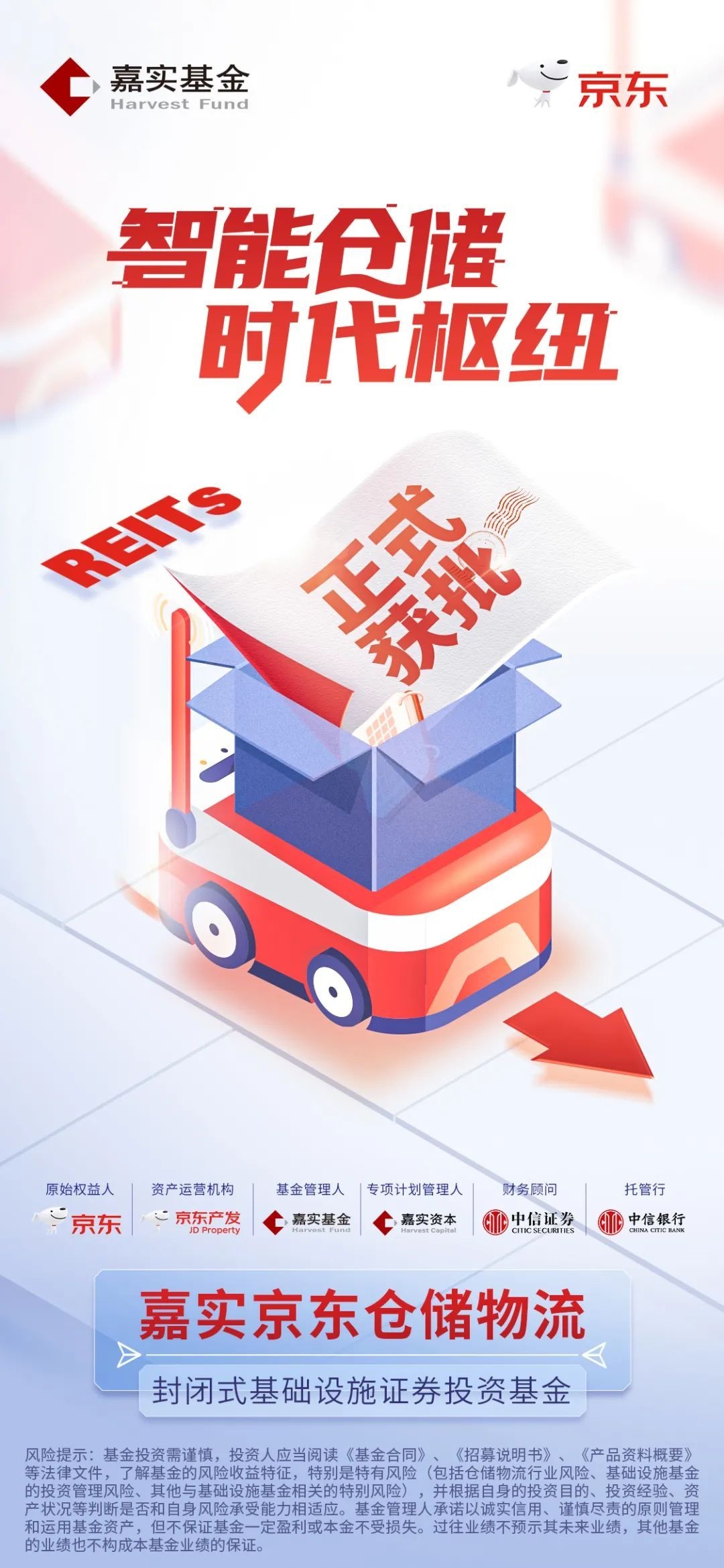 京东集团首席财务官许冉表示:“首只民企仓储物流REIT成功发行上市,将极大地激发和增强民间投资参与供应链基础设施的活力和信心,也有助于推进仓储物流业数字化、网络化和智能化发展。京东也将坚定不移地推进供应链基础设施建设。”