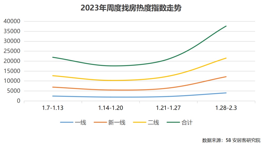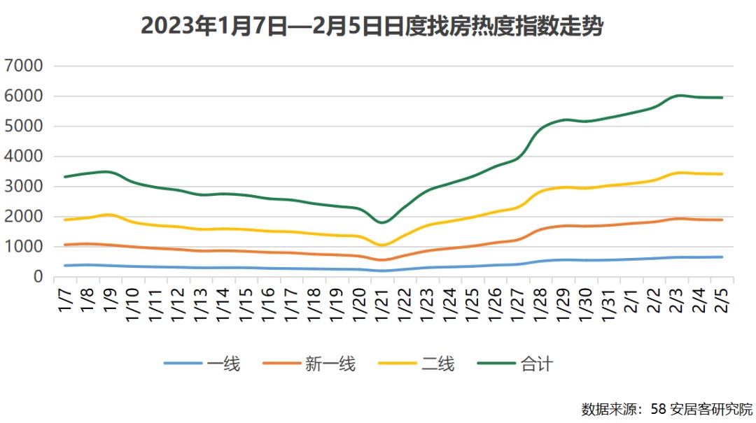 58安居客研究院 开工一周各线城市找房热度继续上涨