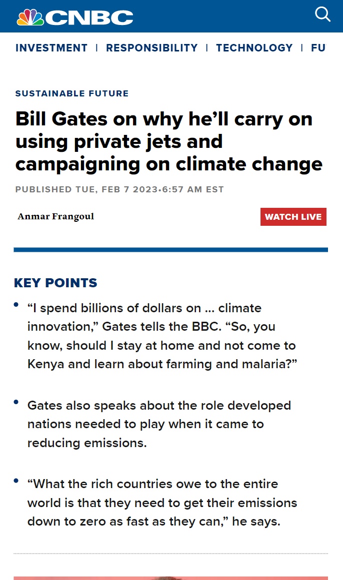 早在2021年2月,盖茨曾表示,“我正在通过购买清洁航空燃料、资助碳捕捉和资助使用电力而非天然气的低成本住房项目来抵消我的碳排放,所以我已经能够消除自己的碳足迹。对我来说,这可能非常昂贵,绿色成本高得令人惊叹。我们必须降低这一成本。”