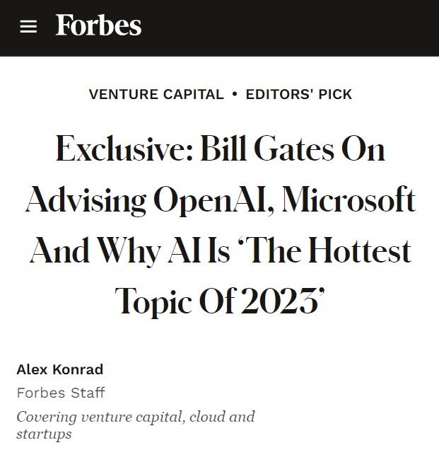 盖茨最近在接受媒体采访中表示,对AI聊天机器人ChatGPT以及AI领域去年取得的诸多成就感到非常兴奋。