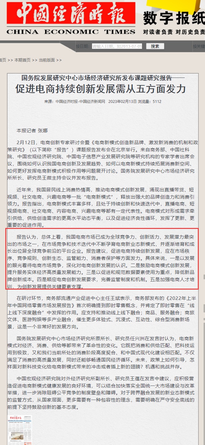 2月13日消息,电商创新专家研讨会暨《电商新模式创造新品牌、激发新消费的机制和政策研究》(以下简称“报告”)课题报告发布会日前在北京举行。