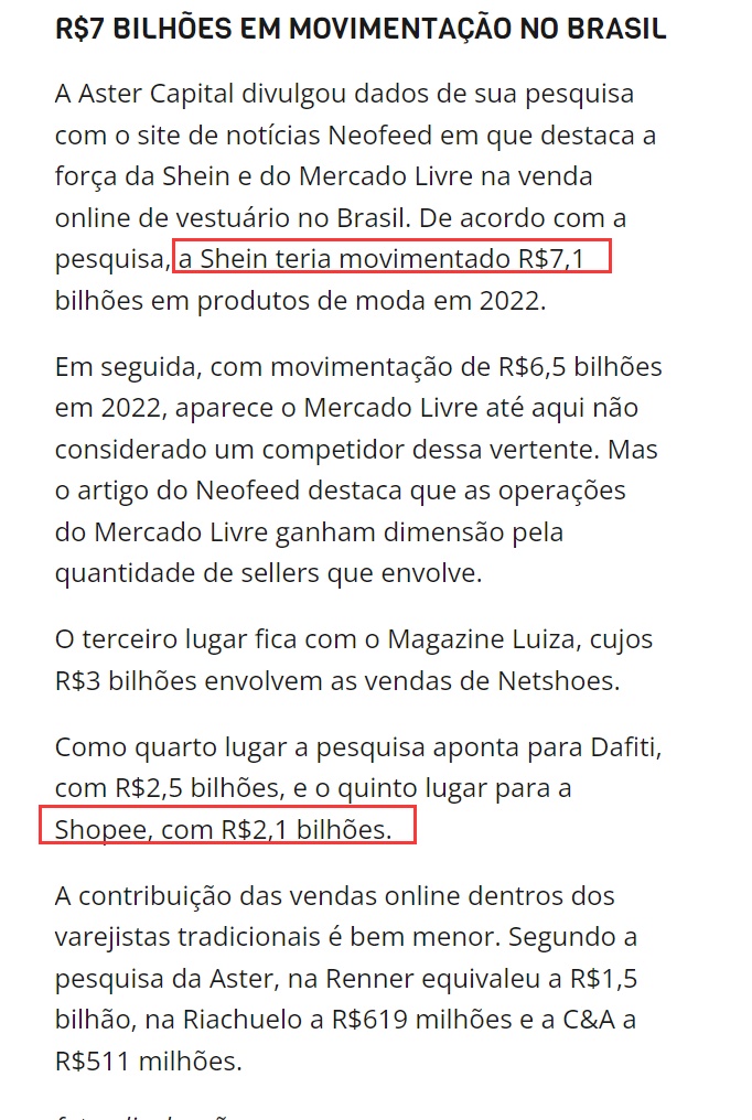2月13日消息,Aster Capital调查显示,2022年,Shopee在巴西的营收达21亿雷亚尔(约合4.02亿美元),在巴西电商平台中排名第五。